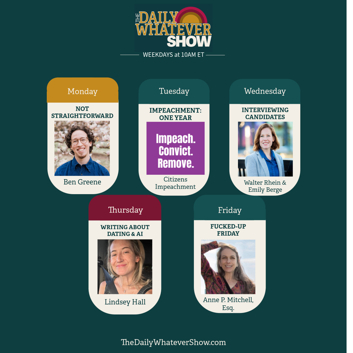 Mark your calendars, because we’ve got so many amazing guests coming to The Daily Whatever Show. 🗓️